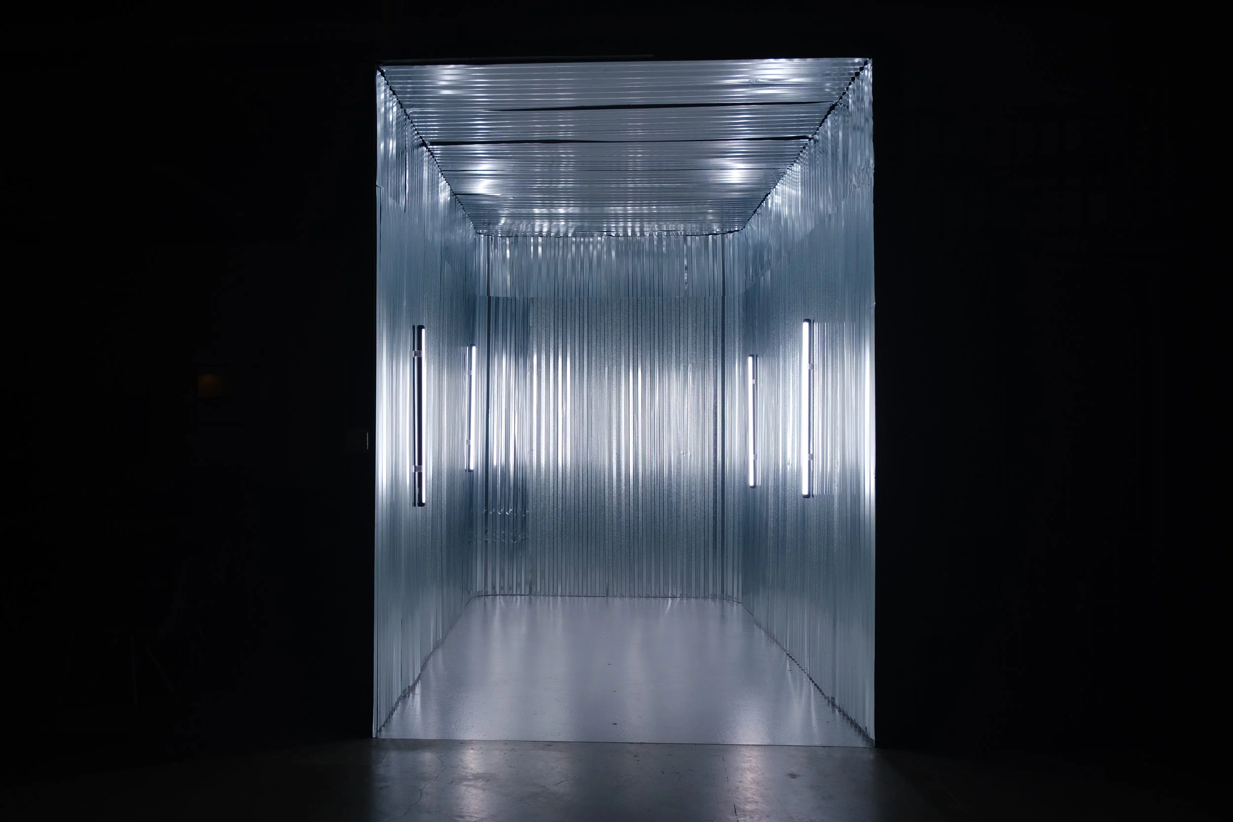 Features: Walls with bullet holes, backlit with lighting to create beams through holes, smoke machine/fog for atmospheric effects